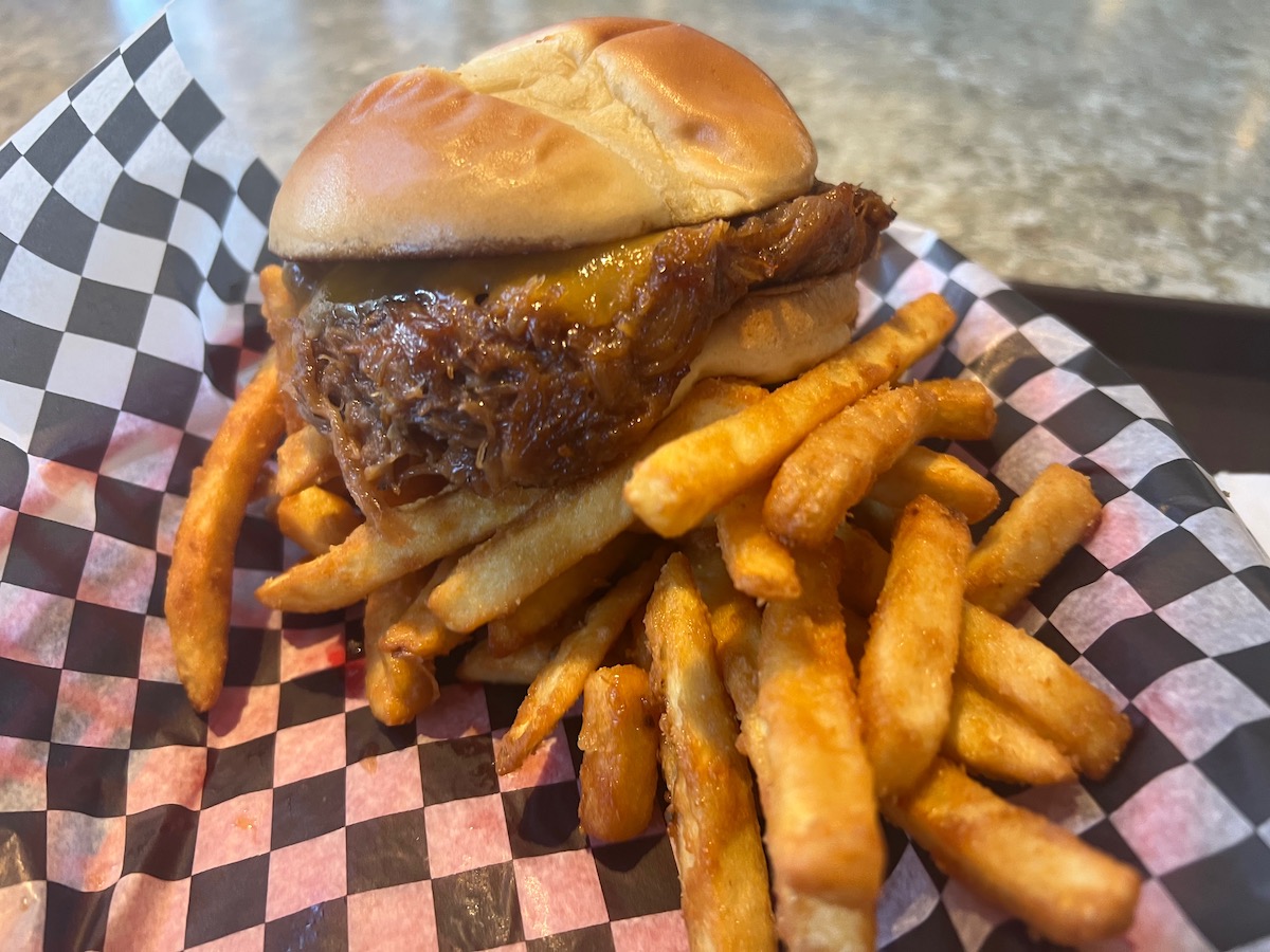 But I am here for the pulled pork. When I get to the counter, I am told it’s slow-cooked for 12 hours, then braised. All of it done in-house. And what I get is a hefty helping of pulled pork, with a sauce that’s tangy and slightly sweet. There’s cheese in there, too. And it makes for a big meal. Honestly, it’s one of the best pulled-pork meals I’ve had in this city. In a truck depot. But that’s what’s great about Edmonton, right? You can find great eats in the most unexpected of places.