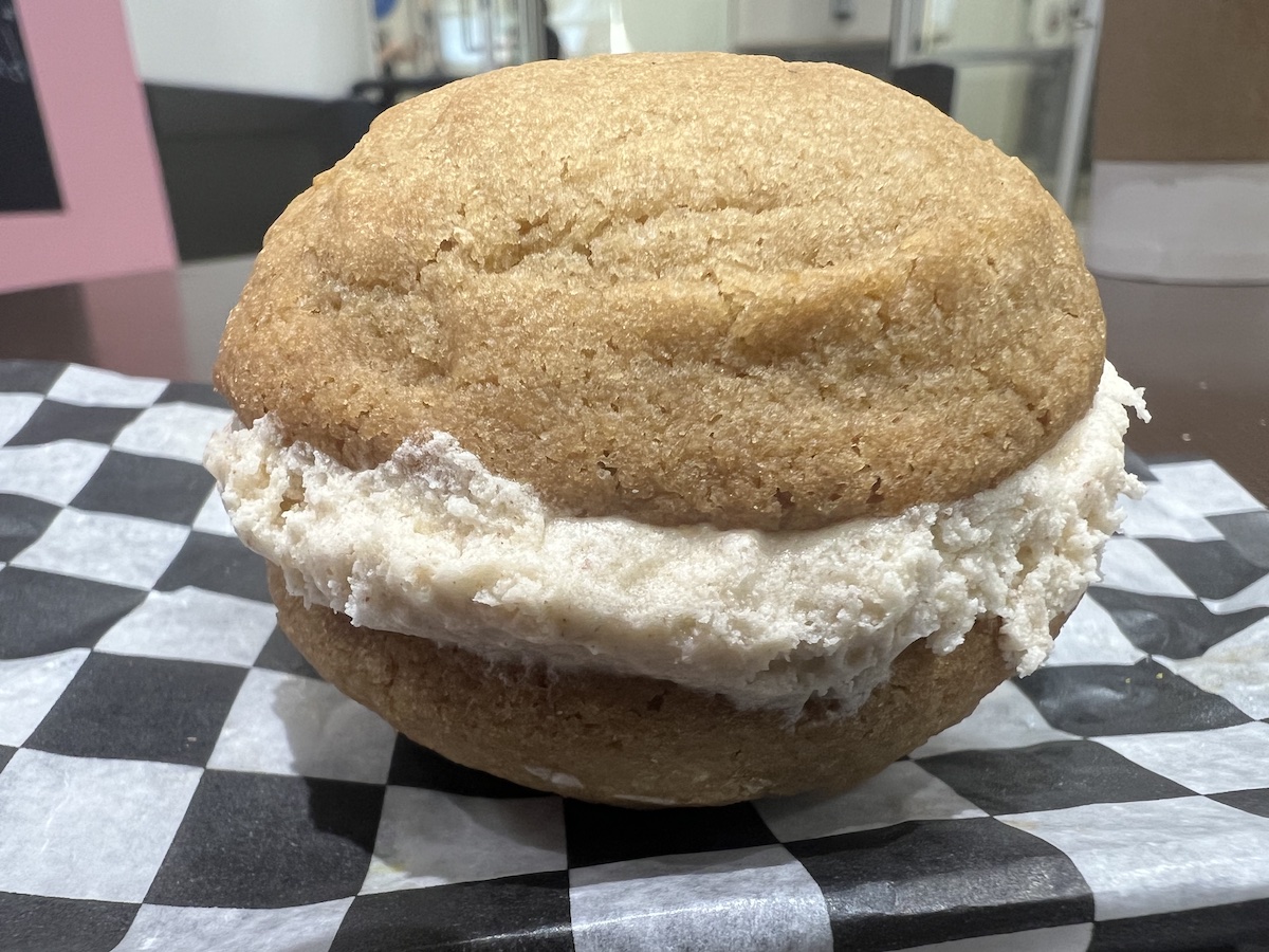 So, I stopped in for a filling Italian cold cut sandwich, pressed and toasted, and something that caught my eye out of the baked-goods window — a brown-sugar cookie sandwich, stuffed with cinnamon icing. It was a tough choice between that and the espresso brownie, but I am only one man.